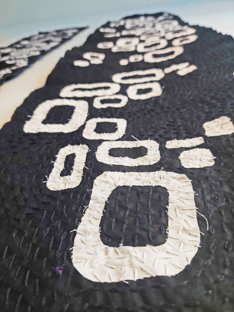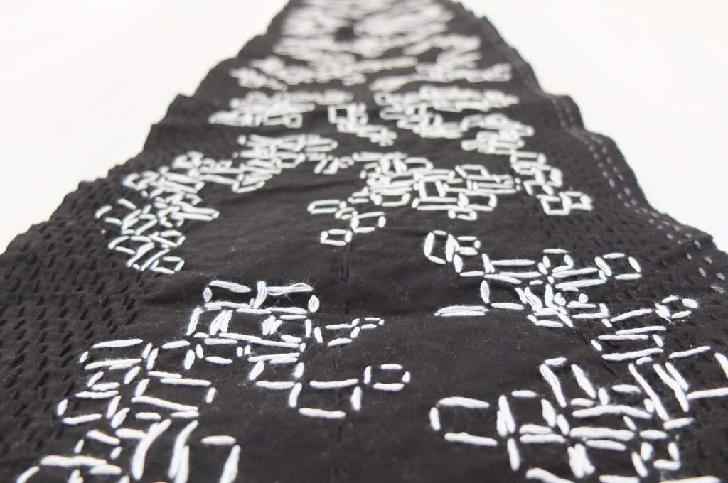 Stream of thoughts II. 2023. Hand stitched cotton. cm 146 x 30